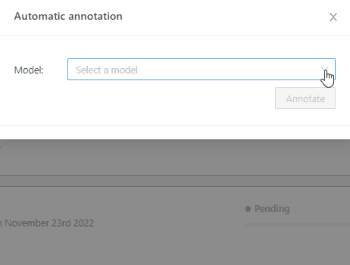In the menu click on Automatic Annotation to open the dialog box, and from the drop down menu select ‘YOLO v3’ .